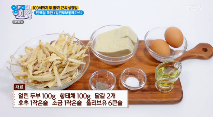 얼린 두부 100g, 황태채 100g, 달걀 2개,