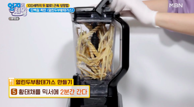 믹서에 황태채를 넣고,