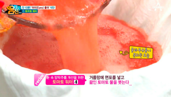 시간이 지나면 맑은 토마토 물이 됩니다.