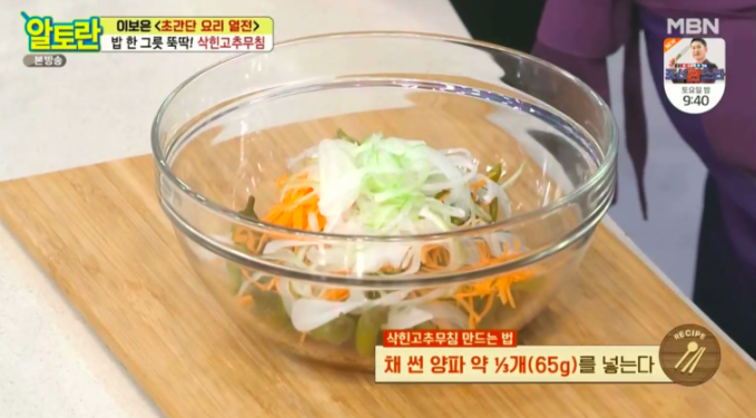 채 썬 당근 , 채 썬 양파를 넣고 버무려주세요