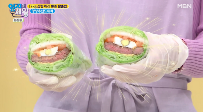 빵 대신 양상추로 만든 샌드위치 먹고