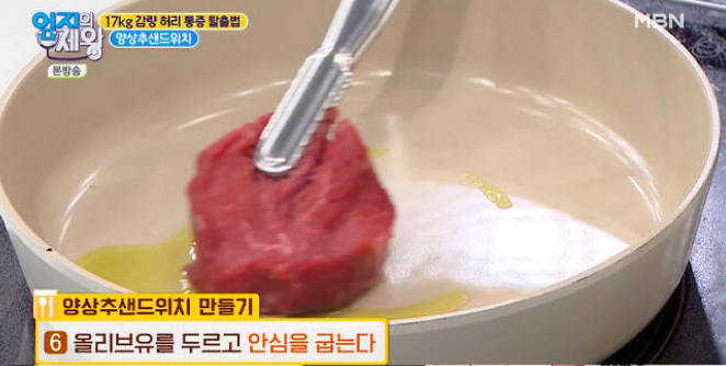 달군 후라이팬에 올리브유를 두르고,