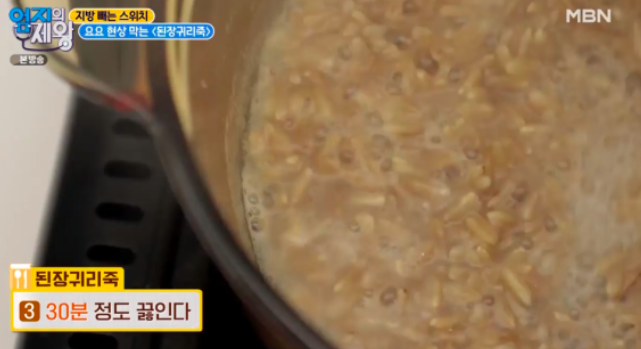 불린 귀리 100g, 물 3컵, 된장 푼 물